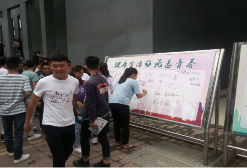 活动的内容有强戒所学员现身说法、现场师生庄严宣读《禁毒誓词》、在“健康生活 无毒青春”签名墙上签名、发放宣传资料等。活动中,水家音乐知名人士韦明华穿插演唱了自创的《痴蚕》、《心上毛尖》,赢得了现场的阵阵掌声,现场气氛活跃。