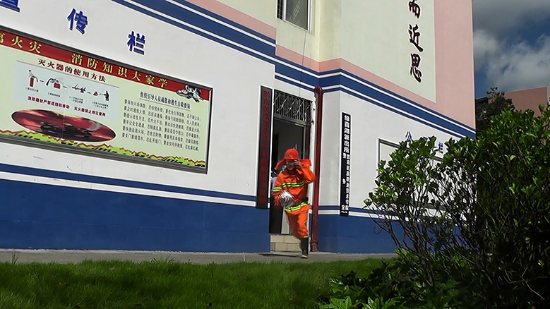 消防站消防员、安保人员接到火情通知后迅速赶往现场