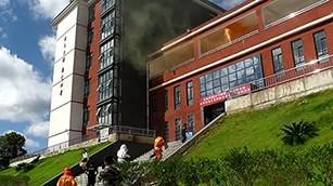 在接到发生火情和指挥中心的通知后,各位老师立即到达指定岗位,引导宿舍内学生快速疏散,学生们弯着腰,用毛巾捂住口鼻,沿着指定路线快速疏散,有序撤离到南区实训楼前操场,耗时4分30秒。随后各班清点人数,并层层向上汇报,学生全部安全疏散完毕。