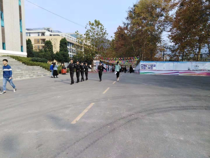 三、为确保交通安全,划定了参会企业车辆停车区,安保人员和学生护校队员分别到校门和校园各交岔路口、停车区,负责引导车辆分流和规范停放。