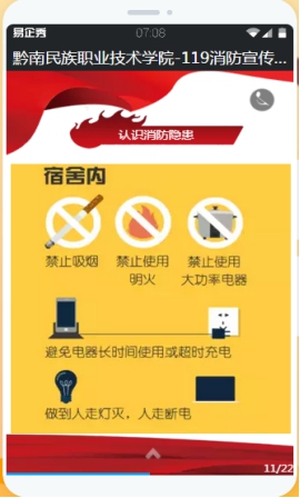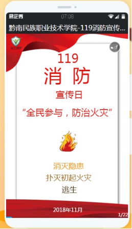 在11月9日即消防安全宣传日,保卫处充分利用学生喜闻乐见的宣传方式--微信,通过各班班主任将宣传视频发送至各班微信群,开展消防安全知识的宣传。