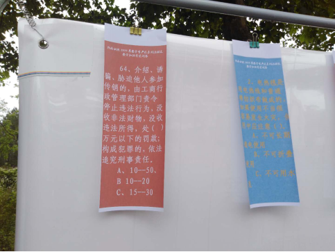 活动中,宣传工作人员向过往师生发放了保卫处自行设计的安全知识宣传小手册2000余份。师生在现场即时学习了小手册上的安全知识,随后踊跃参加了安全知识有奖竞答。每一轮的100道安全知识有奖竞答题,在工作人员宣布开始答题后不到五分钟就被一抢而空,现场竞答气氛异常活跃,此次活动累计发放了竞答纪念品300多份。