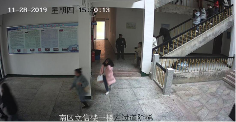 学生在楼道内有序的疏散
