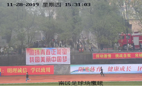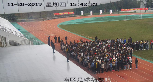 师生们有序疏散到南区足球场
