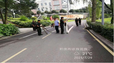 此次集中培训的主要内容有:学习《治安处罚法》相关内容、军姿训练、“八小件”的使用、消防演练、疫情防控、笔录编制、反恐知识等。尽管天气炎热,汗如雨下的队员们训练积极性不减,认真学习各项安保技能,比如怎么做好门岗服务和疫情防控、怎么识别火源性质并选择合适的灭火剂、怎么快速编制笔录、怎么教育违反校规校纪的学生、怎么辨识安全隐患等。