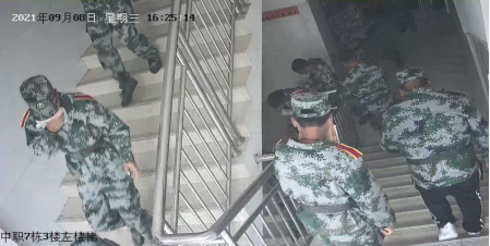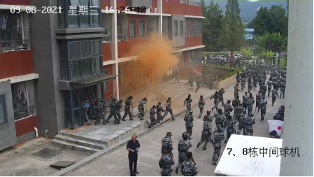 16:30整,演练指挥部接到中职宿舍楼火情报警,立即启动了消防疏散应急预案。在响彻云霄的火灾警报声中,宿舍楼新生在老师和安保人员的引导下,有序疏散到北区运动场集中。疏散过程中没有发生摔倒、踩踏等现象。整个疏散、搜救过程耗时11分钟。