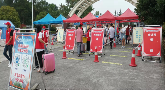 2021年9月14、15日,2021级5000余名高职新生报到入学。为进一步落实疫情防控要求,切实抓好“外防输入、人物同防”,扎实做好校园疫情防控工作,2021年9月13日,学院在中区大门设置了6条专用检测通道,每条通道上分别设置行李消杀点、扫码(贵州健康码、接种疫苗情况、行程码)点、体温检测点、身份检查点、手消毒点、更换口罩点,组织全体安保人员进行了一次疫情防控演练。新生入学报到过程中,未发现一例异常和安全事故。