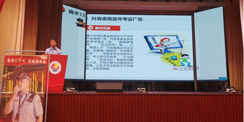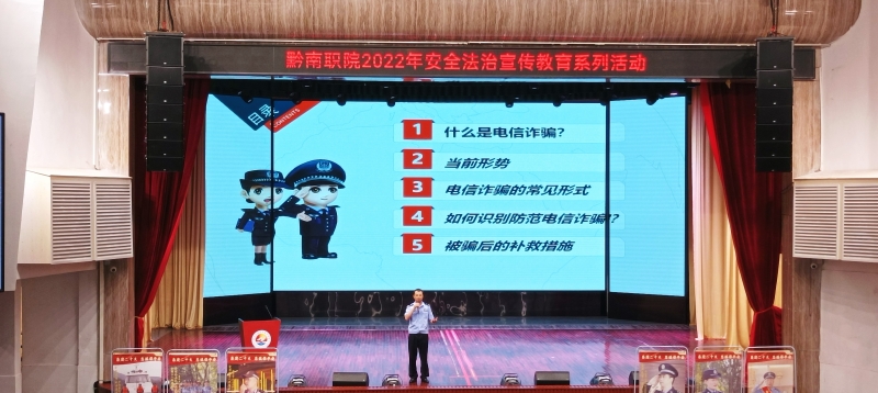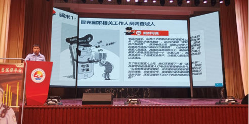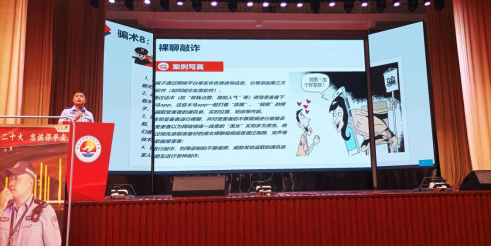 在全国第21个“安全生产月”宣传教育活动期间,为进一步增强师生的安全意识,掌握相应的防范能力,保障自身生命和财产安全,2022年6月28日,保卫处邀请了辖区绿茵湖派出所教导员孙桂超、民警谢义猛等到校,为500余名各系师生代表举办了一场安全知识讲座。针对现阶段电信诈骗在高校的现状,民警谢义猛就反诈知识进行了详细的讲解,赢得了现场师生的阵阵掌声。