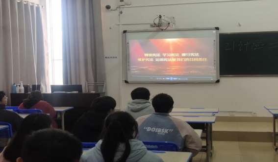 三、组织师生观看宪法宣传短片。2022年12月3日--5日,各系以班为单位,在教室集中观看宪法宣传短片,教职工在各办公室观看。