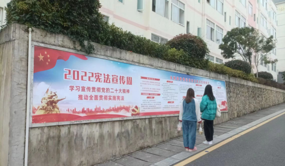 四、更新安全法制宣传栏内容。设计制作了2022年宪法宣传专栏,在宿舍区安全法制宣传栏张贴,供过往师生阅览。