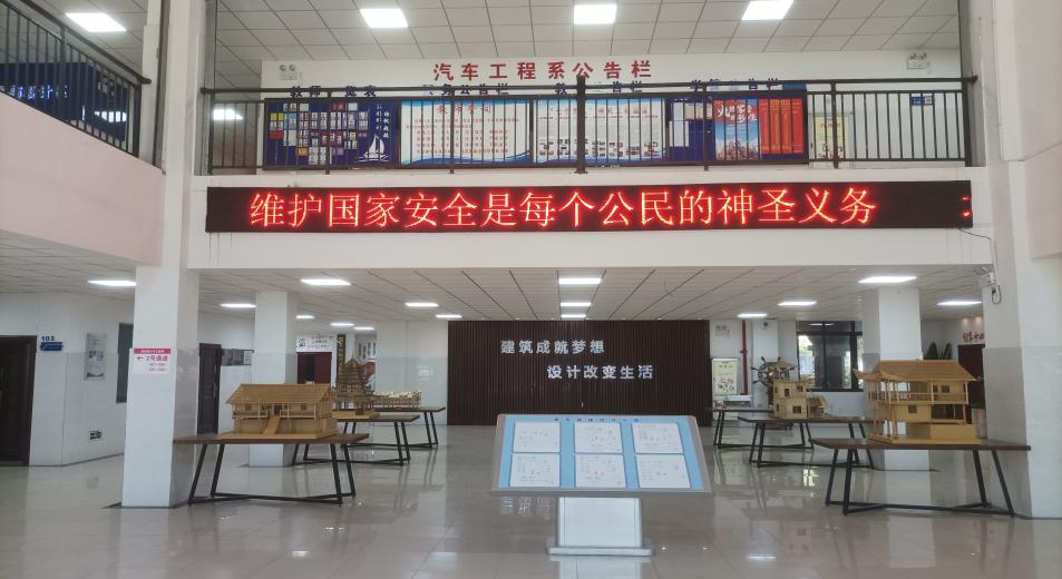 五、4月12日,在同德楼、知味苑、北区网球场分别张挂了“维护国家安全 共筑人民防线”、“维护国家安全 人人有责 人人尽责”、“维护国家安全是每个公民的神圣义务”三条横幅。在会计实训楼和汽车系LED电子屏幕滚动播放“维护国家安全是每个公民的神圣义务 增强保密意识 筑牢安全防线”。