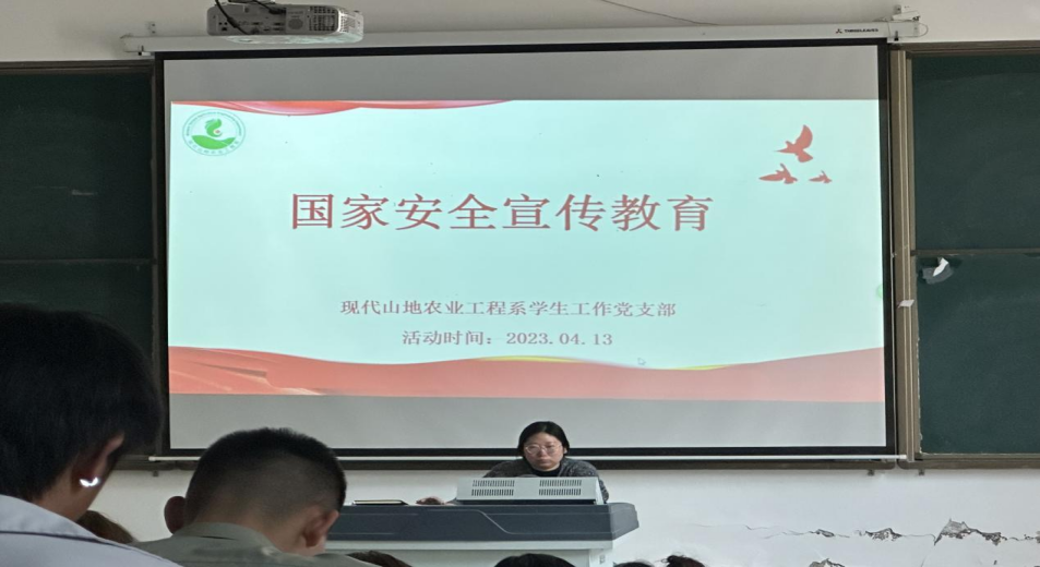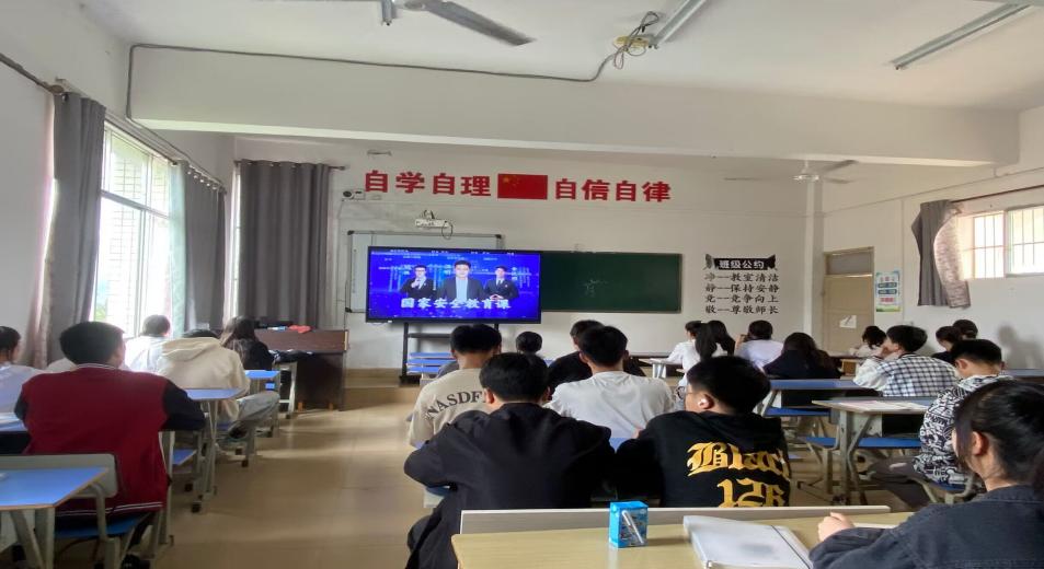 二、各系各班于4月8-15日组织召开了全民国家安全教育日主题班会,学习《中华人民共和国国家安全法》、《总体国家安全观学习纲要》、《反分裂国家法》、《反间谍法》、《反恐怖主义法》《保守国家秘密法》等法律法规,观看国家安全知识宣传视频,在线观看“千万师生同上一堂国家安全教育课”公开课。