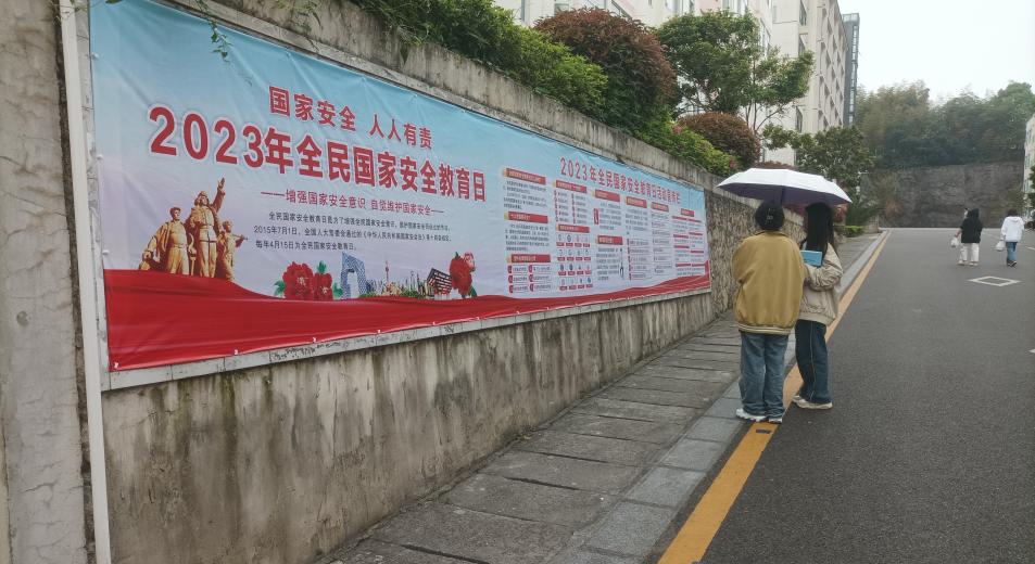 四、4月12日,制作了7块全民国家安全教育日宣传展板,在大数据楼前主干道路进行展出,更新了宿舍区宣传栏内容,供过往师生浏览。