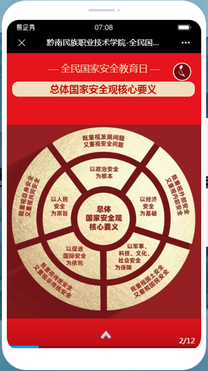 根据州教育局《关于印发〈全州教育系统2023 年全民国家安全教育日活动方案〉的通知》要求,学院于 2023年4月8--16日,以“贯彻总体国家安全观,增强全民国家安全意识和素养,夯实以新安全格局保障新发展的社会基础。”为主题,认真组织开展了全民国家安全教育日系列宣传活动。