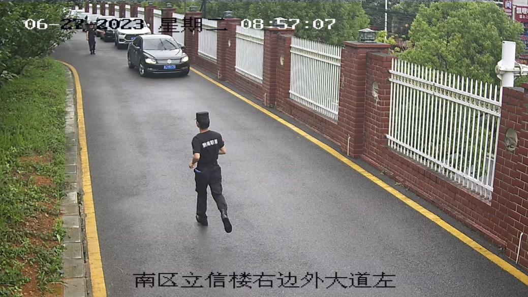 ▲安保人员在南区图书馆东面路段维护交通秩序