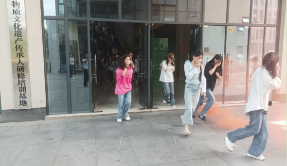 学院于5月22日下午,在知行楼举办了一场防灾减灾应急疏散演练。15:20整,随着演练烟雾的升起,嘹亮的防灾警报被拉响,正在知行楼各教室参加班会的师生,立即在蹲在桌子、讲台下避险。1分钟后,各教室师生从就近的楼梯有序疏散到楼下广场集合,疏散时间为4.5分钟,比去年快0.3分钟。疏散过程中未发生踩踏、摔倒事例。最后,应急管理工作人员对演练进行了点评。