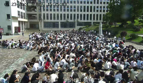 ▲学生在广场上集合