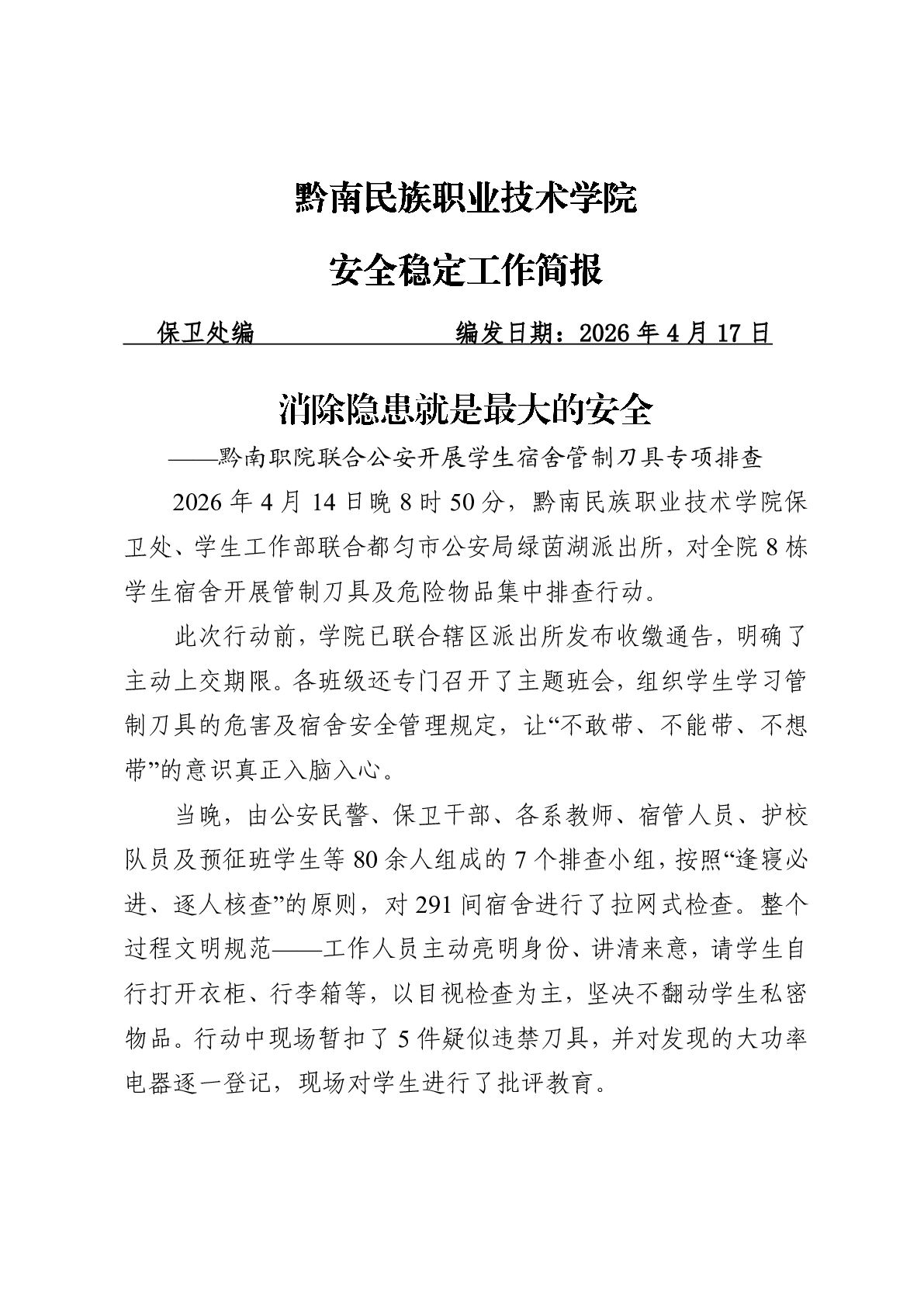 消除隐患就是最大安全