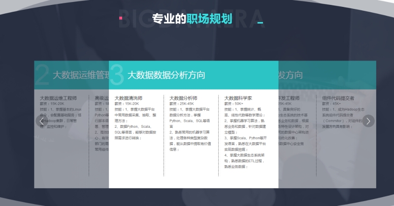 Linux操作系统、数据库系统、Python程序设计、数据仓库技术、数据挖掘技术、数据清洗应用技术、数据筛选与钻取技术、Hadoop程序设计、数据呈现应用技术、数据分析应用技术
