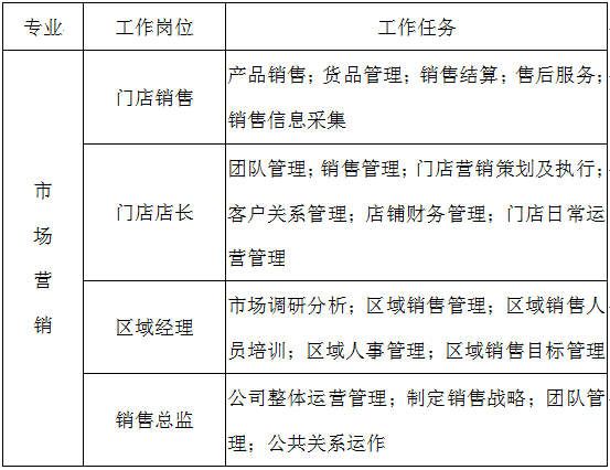 专业核心课:商品销售、营销策划、市场营销学、客户管理、营销法规等