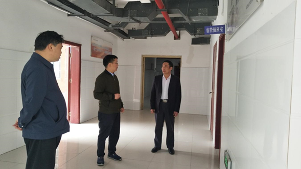 图一 石铃林书记、韦仲园主任与宿管老师交谈