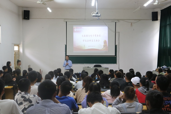 活动在庄严的中国共青团团歌中拉开序幕。首先是系学生管理办公室主任韦仲园讲话,韦主任表示:欢迎2019级的同学们加入大数据与电子商务系学生会,希望大家充分利用这一平台好好锻炼自己,提升自己,服务广大同学,处理好学习与工作之间的关系。