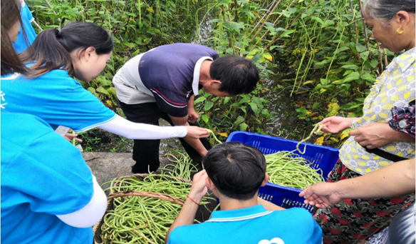 图1 实践队沃屯蜜桔种植园留影 图2 志愿者们在田间帮助农户一起摘豆角 大数据与电子商务系 2019年10月21日
