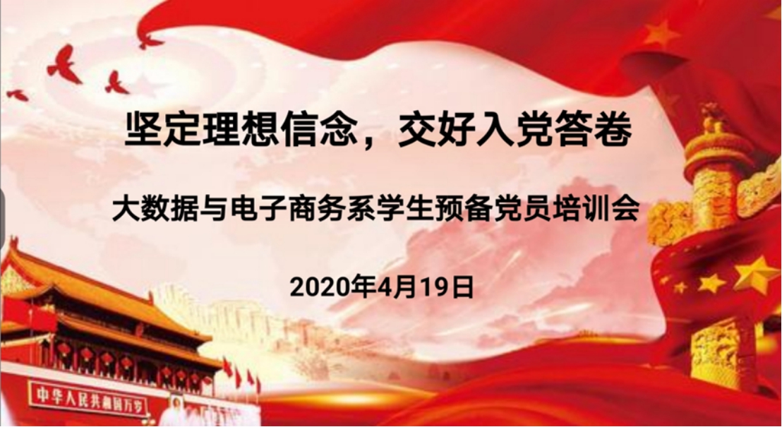 4月19日晚,大数据与电子商务系党总支利用腾讯会议平台,组织开展学生预备党员线上培训。本次培训以“坚定理想信念,交好入党答卷”为主题,培训会由李然老师主持,系党总支书记石铃林对同学们提出要求,大数据系全体预备党员参加此次培训会。
