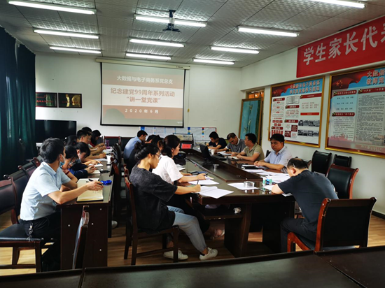 为纪念中国共产党成立99周年,学习贯彻习近平总书记的重要讲话精神,增强思想政治教育,加强党的知识普及,根据院党委《关于开展纪念建党99周年活动方案的通知》相关要求,大数据与电子商务系开展了“讲一堂党课”为主题的纪念建党99周年专题党课活动,党总支全体党员、入党积极分子参加。
