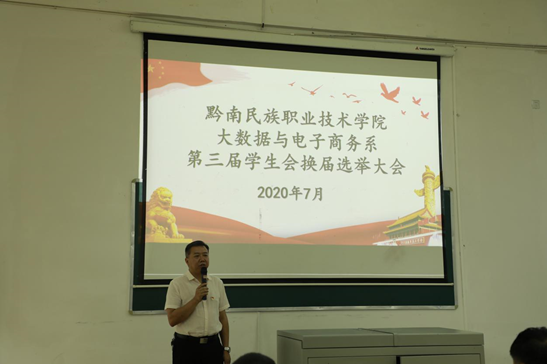 2020年7月2日下午,大数据与电子商务系第三届学生会换届选举大会在大数据系一楼阶梯教室隆重召开。来自各班学生代表及各系学生会主席等共70余人受邀参加此次大会。