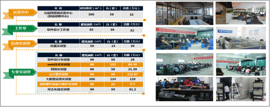 建有由移动应用开发实训室、web前端开发实训室、网络综合布线实训、网络服务配置实训室、软件测试实训室、计算机组装维护实训室等组成专业实训基地—“互联网营销开放实训基地”,是省级优秀开放实训基地。2019被教育部认定国家级生产性实训基地,2020年成为省级高水平产教融合实训基地。依托生产性实训基地与都匀市共建的电商运营中心,完成了区域电商平台“匀城优品”、智慧城市O2O平台“云猫到家”等项目的研发任务,实现农产品销售超1000万元,帮助400余家企业实现了营销模式的转型升级,帮助企业和合作社增收15%,助力60%的传统企业进行了工艺改进和新产品开发。