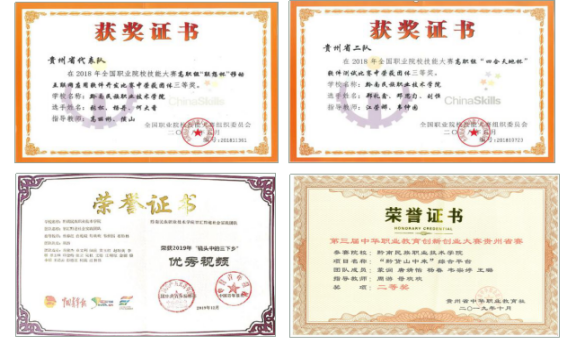 近三年,本专业学生在各类职业技能大赛成绩优异,获国家级二等奖1项,三等奖2项,获省级一等奖4项,二等奖3项,三等奖32项,获州级一等奖11项,二等奖10项,有10名学生通过技能大赛获奖免试升入本科院校继续深造。团队教师指导学生开展“三下乡”活动连续三年获团中“优秀视频奖”、“优秀报道奖”等表彰,学生获省创新创业大赛二等奖2项,三等奖1项,优秀奖1项;1人获全省大学生“青春思辩”辩论赛“最佳辩手”荣誉称号;贵州省残疾人运动会金牌8块,贵州省大学运动会金牌2 块,银牌2 块;在校生依托创业工作室成立公司2家。近三年毕业生就业率均达95%以上,对口就业率80%以上。