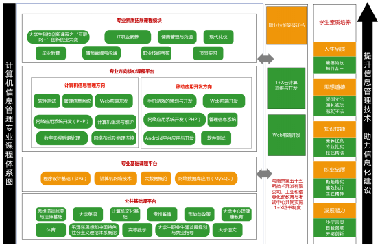 计算机信息管理专业开设于2001年,是中央财政支持建设专业,贵州省优质高职院校建设专业,贵州省骨干专业,教育部认定国家级骨干专业;是贵州省27个产业链中的大数据产业、电子信息产业主要参与建设专业;是“双高计划”重点建设计算应用专业群核心专业。根据产业发展需求和专业发展需要优化资源配置,为聚力筹办职业本科专业,本专业2021年后更名为计算机应用技术专业。目前专业开设有移动应用开发和计算机信息管理2个专业方向,目前在校生419人。本专业对接贵州省十大千亿级产业之一“大数据电子信息”产业,面向新一代信息技术产业,瞄准互联网和相关服务、软件和信息技术服务业软硬件技术支持、软件硬件维护、软件开发、软件测试、软硬件推广销售等岗位群,培养德、智、体、美、劳全面发展“精维护、能开发、会运营”的素质高、技能强、复合型、双创型人才。