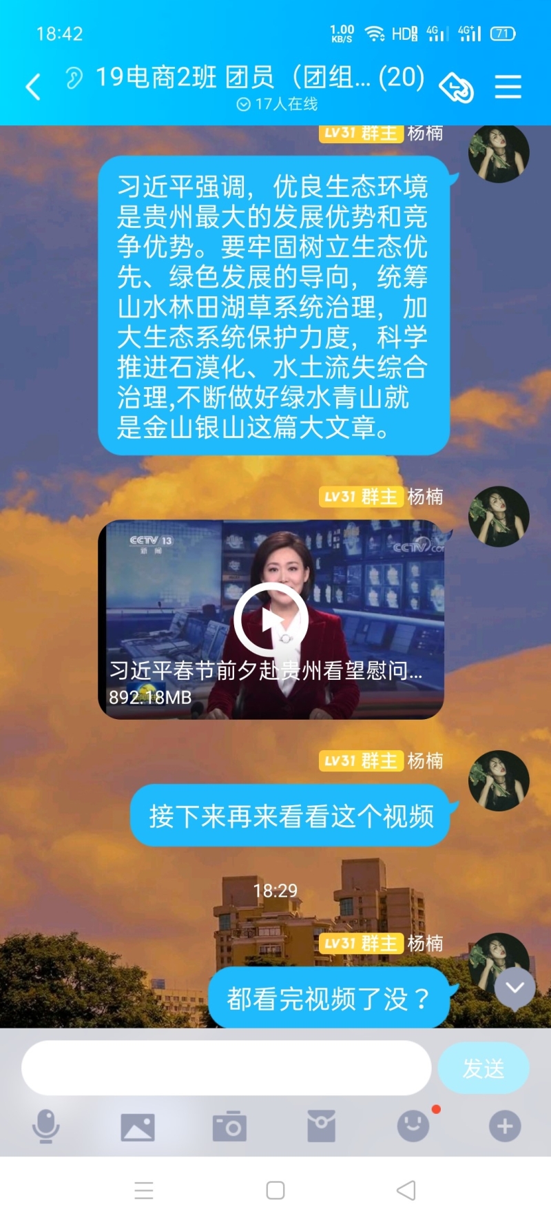 为深入学习贯彻习近平总书记视察贵州重要讲话精神,提高青年团员的政治理论水平和思想道德修养,提升青年团员的整体素质,2021年3月8日-12日,我系组织19、20级36个团支部近600名青年团员通过线上学习的方式积极开展以“学习贯彻习近平总书记视察贵州重要讲话精神”为主题的团组织生活会。