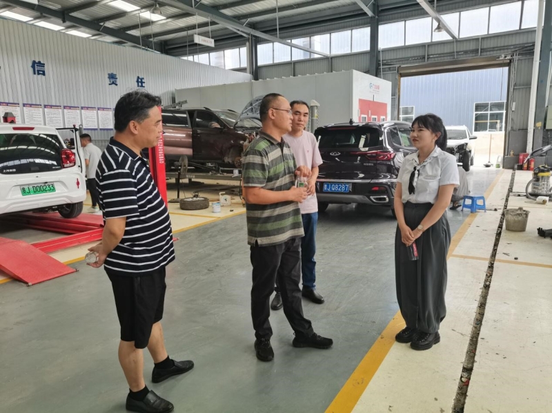 图为副院长王焱一行与在都匀市永源汽车销售服务有限公司就业的2021届毕业学生印金梅进行交流,了解学生在该公司就业情况