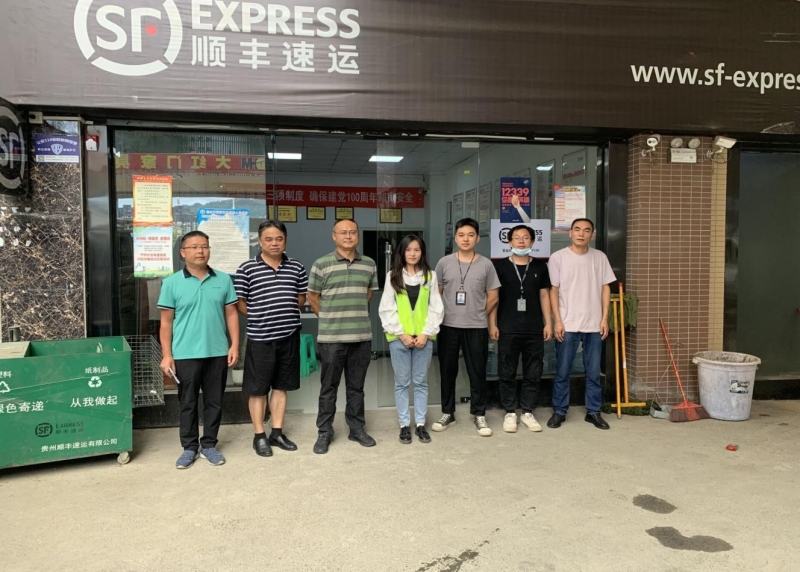 图为副院长王焱一行与在贵州顺丰速运有限公司都匀分公司就业的2021届毕业学生合影