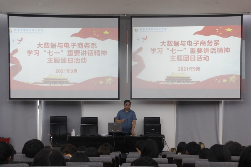 何其有幸,生于华夏,见证百年,愿山河无恙,愿祖国繁荣昌盛。翻开中国共产党的历史画卷,是风雨兼程的一百年,是波澜壮阔的一百年。为深入学习习近平总书记“七一”重要讲话精神,大数据与电子商务系团总支于2021年9月16日组织20级共260余名团员青年,分别在计科楼106教室、知行楼圆形报告厅开展了学习习近平总书记“七一”重要讲话精神主题团日活动。