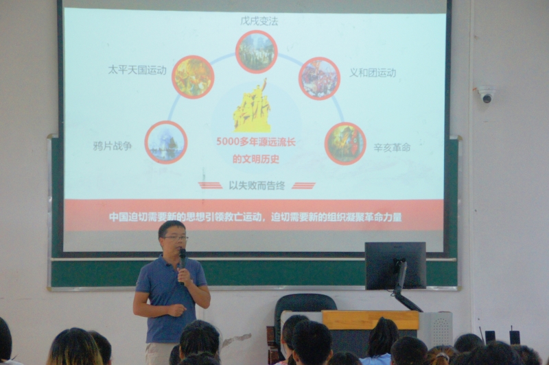 韦仲园老师带领同学们回顾了党的百年历史,中国共产党始终着眼于人民福祉、民族复兴,从50多名党员的政党发展成为9500多万名党员的世界第一大执政党。历史和事实证明,只有中国共产党才能领导中国,只有社会主义才能救中国。在党的坚强领导下,中华民族迎来了从站起来、富起来到强起来的伟大飞跃,并对自身前途、命运充满希望和必胜信念。