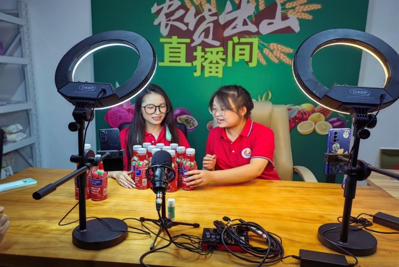 图为服务队员在直播基地开展直播