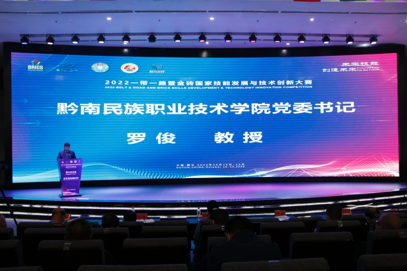 学院党委书记罗俊表示,“2022一带一路暨金砖国家技能发展与技术创新大赛之数据分析与可视化赛项”国内赛总决赛落户黔南民族职业技术学院,为我院推进省高水平高职学校建设,进一步深化开放合作办学留下了浓墨重彩的一笔。并代表学院对金砖国家工商理事会的信任表示衷心的感谢,对国内外大数据行业的各位专家和兄弟院校的各位老师、选手表示热烈的欢迎,向为筹备本次大赛付出辛劳的各位老师和同学们表示诚挚的敬意。黔南民族职业技术学院在州委州政府的高度重视和正确领导下,在省、州教育及有关部门的关怀帮助下,在各兄弟院校的积极支持下,学院紧扣“建成黔南经济社会发展的高级技术技能人才培养培训基地和省优质高职院校”的发展定位,紧贴地方经济社会发展、产业发展和市场需求,统筹推进学院“2348”工作目标和思路,校容校貌发生了根本性改变,学院党的建设、基本建设、内涵建设和文化建设取得了可喜成绩,办学实力明显增强,社会认可度明显提升。学院秉持开放创新、互学互鉴、合作共赢的精神,借助“中国——东盟教育周”国际教育合作交流平台,主动融入“一带一路”国家战略及沿线国家的教育合作、人文交流工作中。在金砖国家工商理事会的大力支持下,黔南民族职业技术学院首次承办“一带一路暨金砖国家技能发展与技术创新大赛”,并以此次大赛为契机,找准突破口,加快补齐短板,助推黔南民族职业技术学院中外合作办学取得新的突破,助推黔南职业教育对外开放迈向新的台阶。