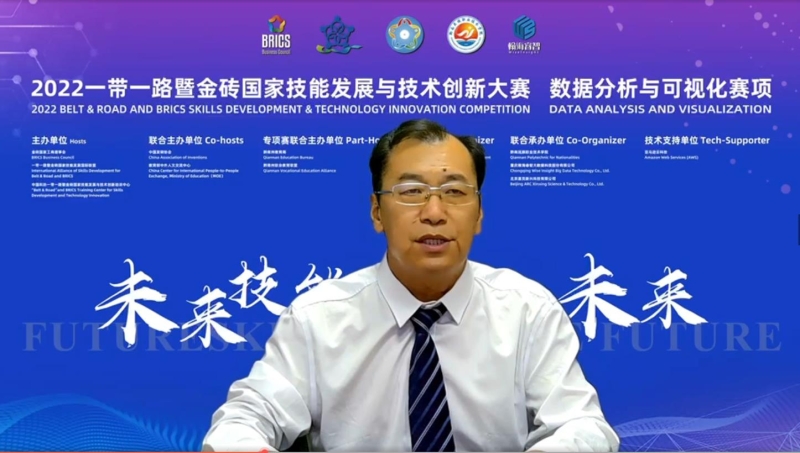 金砖国家工商理事会(中方)技能发展工作组组长、一带一路暨金砖国家技能发展国际联盟理事长、金砖国家技能发展与技术创新大赛组委会执委会主席刘振英在线上讲话中表示,金砖国家技能发展与技术创新大赛是经金砖国家最高领导人会晤、筹备委员会认可、在中华人民共和国外交部备案、金砖国家工商理事会批准的国际大赛,也是促进金砖国家间教育合作、未来技能开发、培养人文交流的长效合作机制。金砖大赛连续五年作为金砖国家工商理事会年度报告的重要成果呈送金砖五国元首。2022年中国再次担任金砖国家轮值主席国,金砖技能组将重点在以下五个方面开展国际项目合作,第一在技能发展工作组框架下成立金砖技能标准化工作委员会,制定职业技能标准开发技能课程、颁发技能证书;第二开展金砖国家未来技能训练基地合作,培养专业技能人才;第三建立金砖国家技能发展与技术创新远程大讲堂长效机制,开展理论和技术研讨及技能培训;第四建设金砖技能发展与技术创新研究院,为金砖各国技能发展提供服务;第五继续在金砖国家工商理事会的机制下开展金砖国家技能发展与技术创新大赛。希望各参赛单位、合作平台、合作单位能够继续参加金砖技能组组织的各项国际合作项,深化国际产教融合合作,共同助力高水平教育对外开放,为推动中外职业教育合作做出贡献。