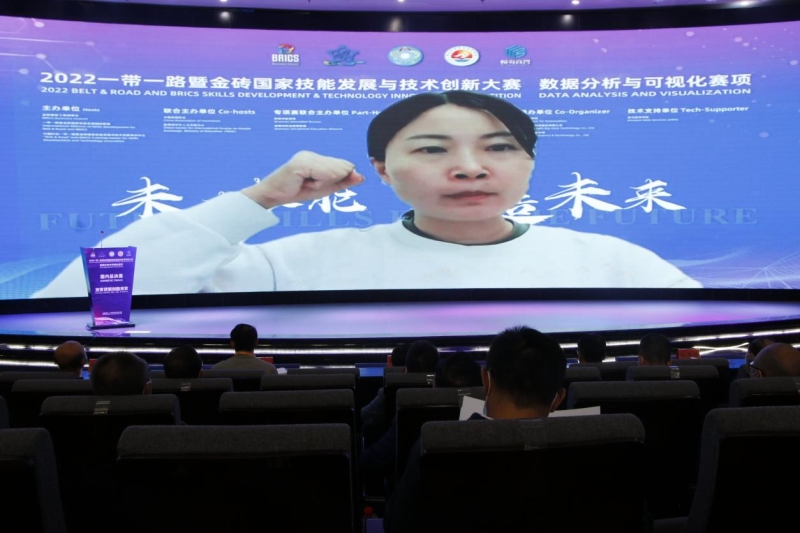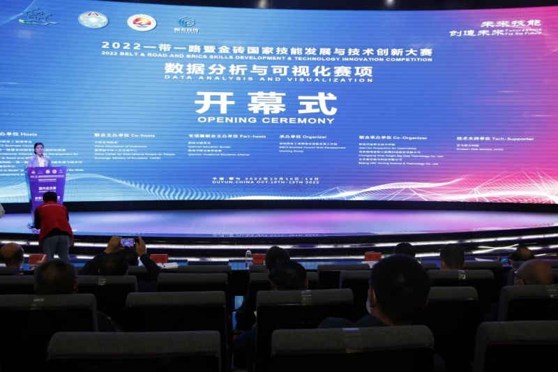 最后,由贵州省黔南州人大常委会副主任陈明莉宣布2022一带一路暨金砖国家技能发展与技术创新大赛之数据分析与可视化赛项总决赛正式开幕。