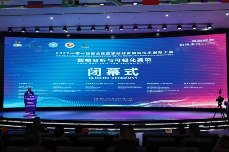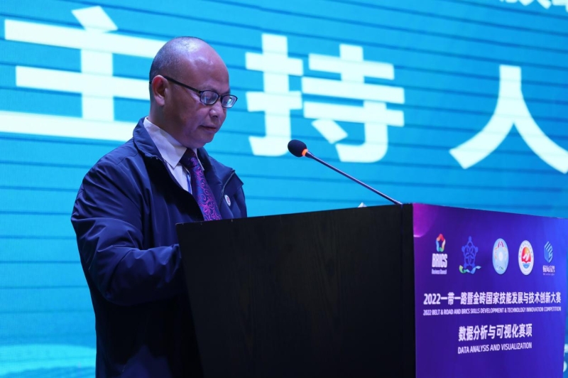 2022年10月10日——10月13日,2022一带一路暨金砖国家技能发展与技术创新大赛之数据分析与可视化赛项总决赛在黔南民族职业技术学院成功举办!10月13日上午举行了闭幕式,黔南民族职业技术学院副院长张泽宽主持闭幕式。