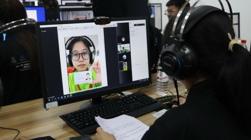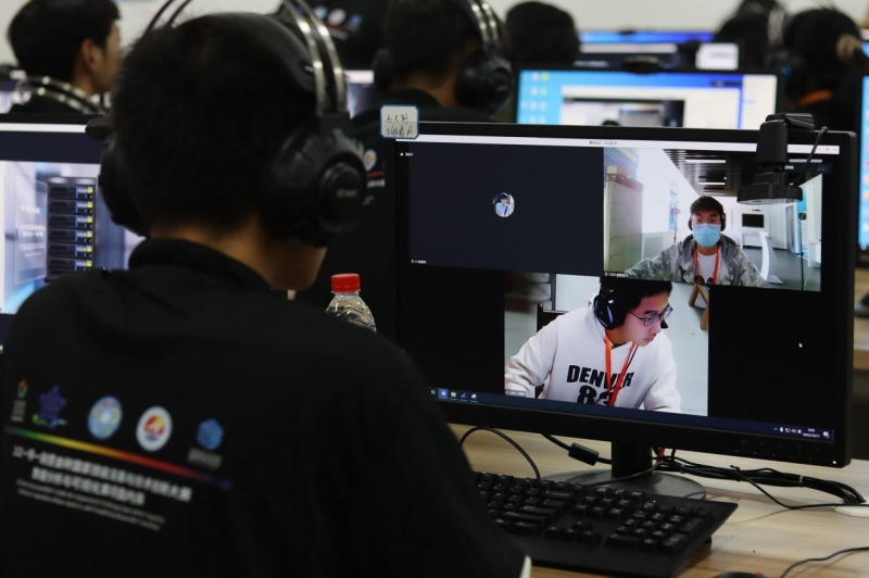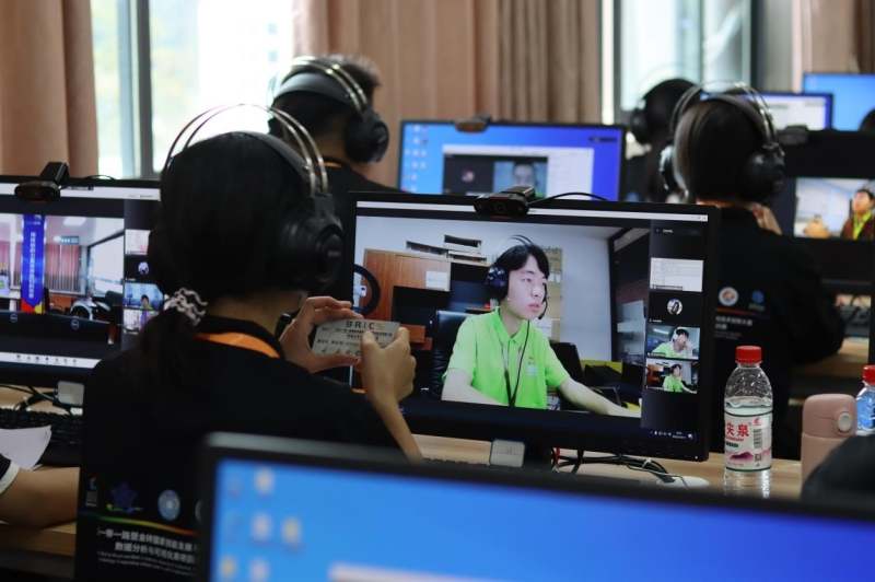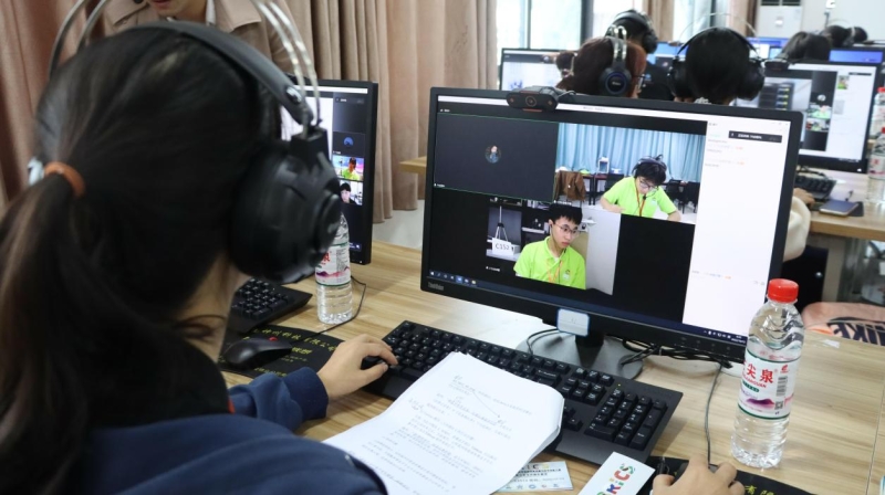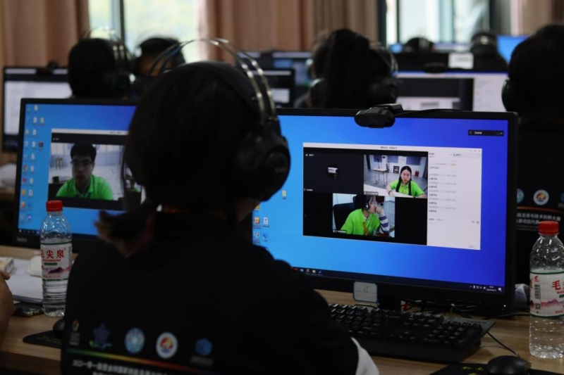 (图为赛事专家,仲裁,裁判等工作人员远程监控国内外参赛选手)