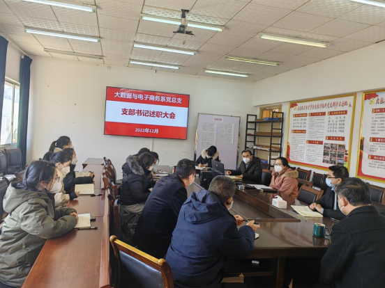 为深入学习宣传贯彻党的二十大精神,进一步加强基层党建工作,夯实支部党建基础,切实发挥党支部的战斗堡垒作用。12月17日,大数据与电子商务系党总支在三楼会议室召开2022年度党支部书记述职会议。会议由系党总支书记韦递平主持,全系党员教师参加会议。