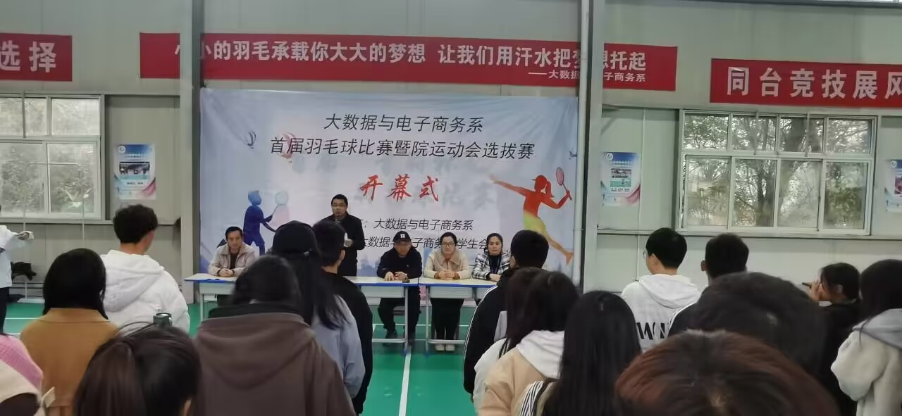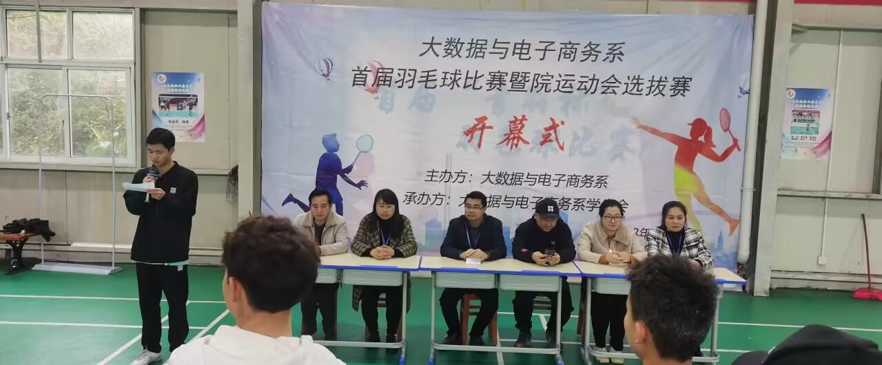 为贯彻党的二十大精神,加快体育强国建设步伐,展示学生的体育风采和精神面貌,丰富学生课余文化生活,积极营造和谐的育人环境,2023年3月6日下午,大数据与电子商务系首届羽毛球比赛暨院运动会选拔赛在学院羽毛球馆拉开帷幕。系党总支书记韦递平、系党总支副书记李然、学院羽毛球协会指导教师沈远强、学管负责人杨春红、系团总支负责人白礼姣、系辅导员和参赛选手参加了开幕式。