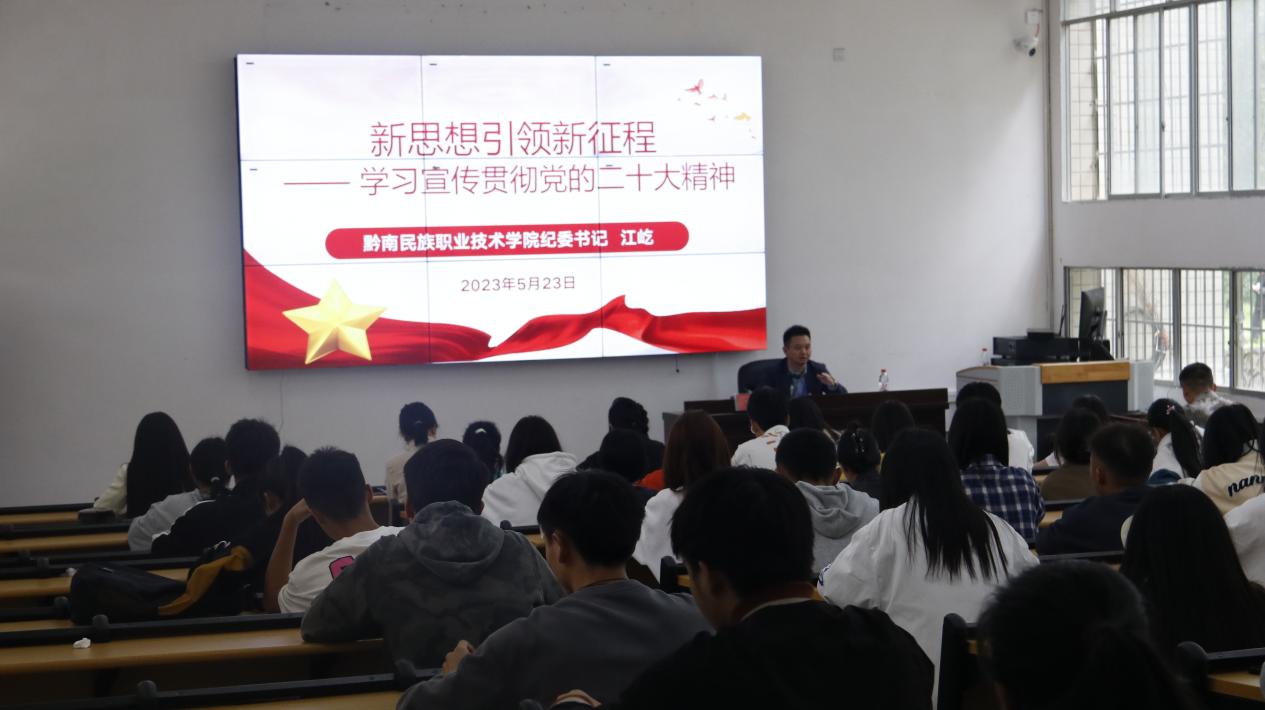 为深入学习贯彻落实党的二十大精神,确保党的二十大精神入脑入心、落地落实,5月23日下午,学院党委委员、纪委书记江屹来到大数据与电子商务系为师生作党的二十大精神专题宣讲。