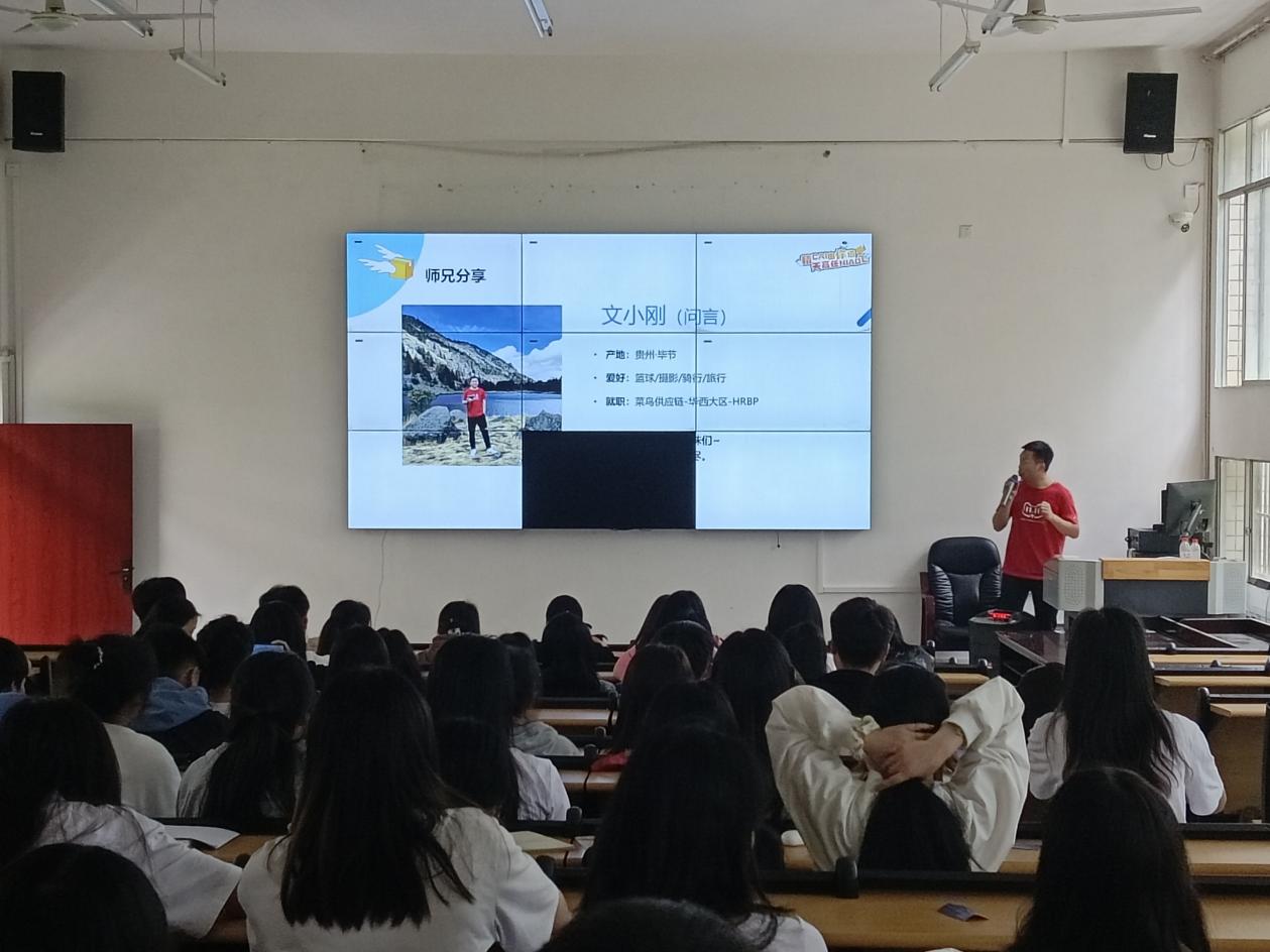 在招聘会上,两家公司招聘人员向学生介绍了公司和招聘岗位的情况,播放公司宣传视频,还通过有奖竞答、现场提问互动等方式,调动同学们的积极性,进一步提升宣讲效果。本次招聘会上,贵州顺丰速运有限公司提供岗位400个,浙江菜鸟有限公司提供岗位30个,参会学生150余人。