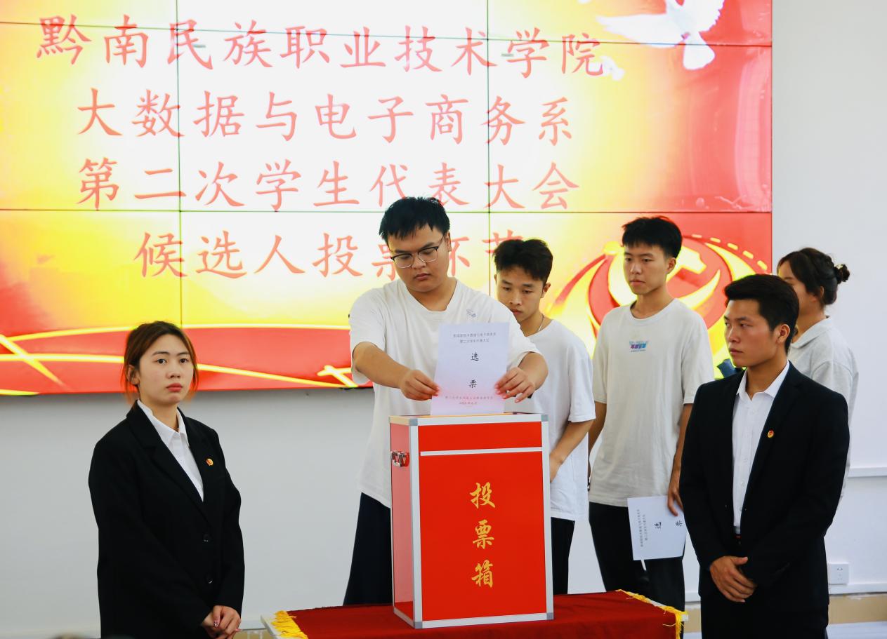 随后,按照会议议程,由系学生会执行主席陈海金作《黔南民族职业技术学院大数据与电子商务系第六届学生会工作报告》,对学生会一年的工作进行总结,执行主席陈贵兰宣读《黔南民族职业技术学院大数据与电子商系学生会章程》,文体部部长陈俞宏宣读《黔南民族职业技术学院大数据与电子商务系第二次学生代表大会提案工作报告》,办公室秘书长王进杯向大会作《黔南民族职业技术学院大数据与电子商务系第二次学生会代表大会筹备工作报告》。