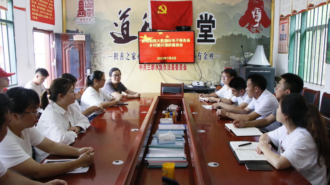 在三都水族自治县中和镇华阳村,“禁毒防艾,青春普法益起来”乡村振兴服务队的师生与华阳村社区党群工作人员召开了座谈会。座谈会上,服务队向华阳村社区党群服务中心汇报了“三下乡”活动的基本情况,指导老师就活动安排及需求进行了相关阐述,华阳村社区党群服务中心对服务队的到来表示欢迎,表示将会大力支持并提供帮助。